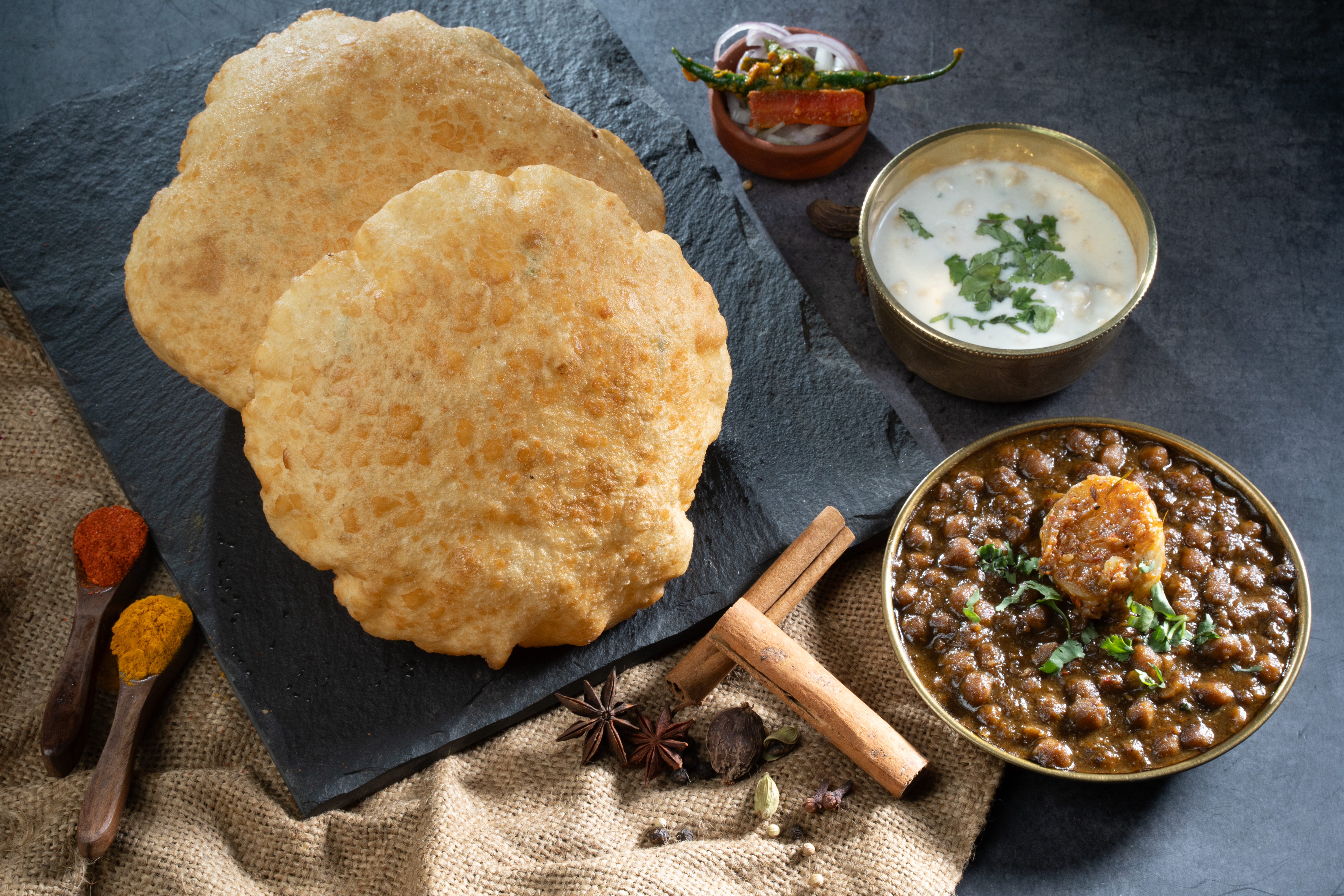 - 3.The Essential Accompliments: What is Chole Bhature without the perfect sides? We serve our masterpiece with crisp raw onion rings, fiery green chilies, and our house-special tangy mixed pickle.